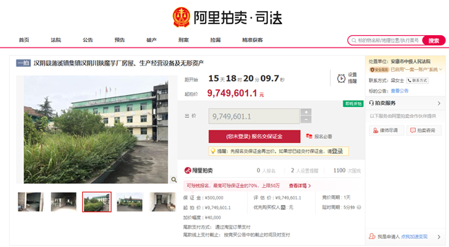安康市中級人民法院將于2020年11月12日10時至2020年11月13日10時止(延時除外)在安康市中級人民法院淘寶網司法拍賣網絡平臺上(網址:https://sf-item.taobao.com/sf_item/629451786667.htm?spm=a213w.7398554.paiList.1.768c7e34yD49Rm)進行公開拍賣活動,現公告如下: