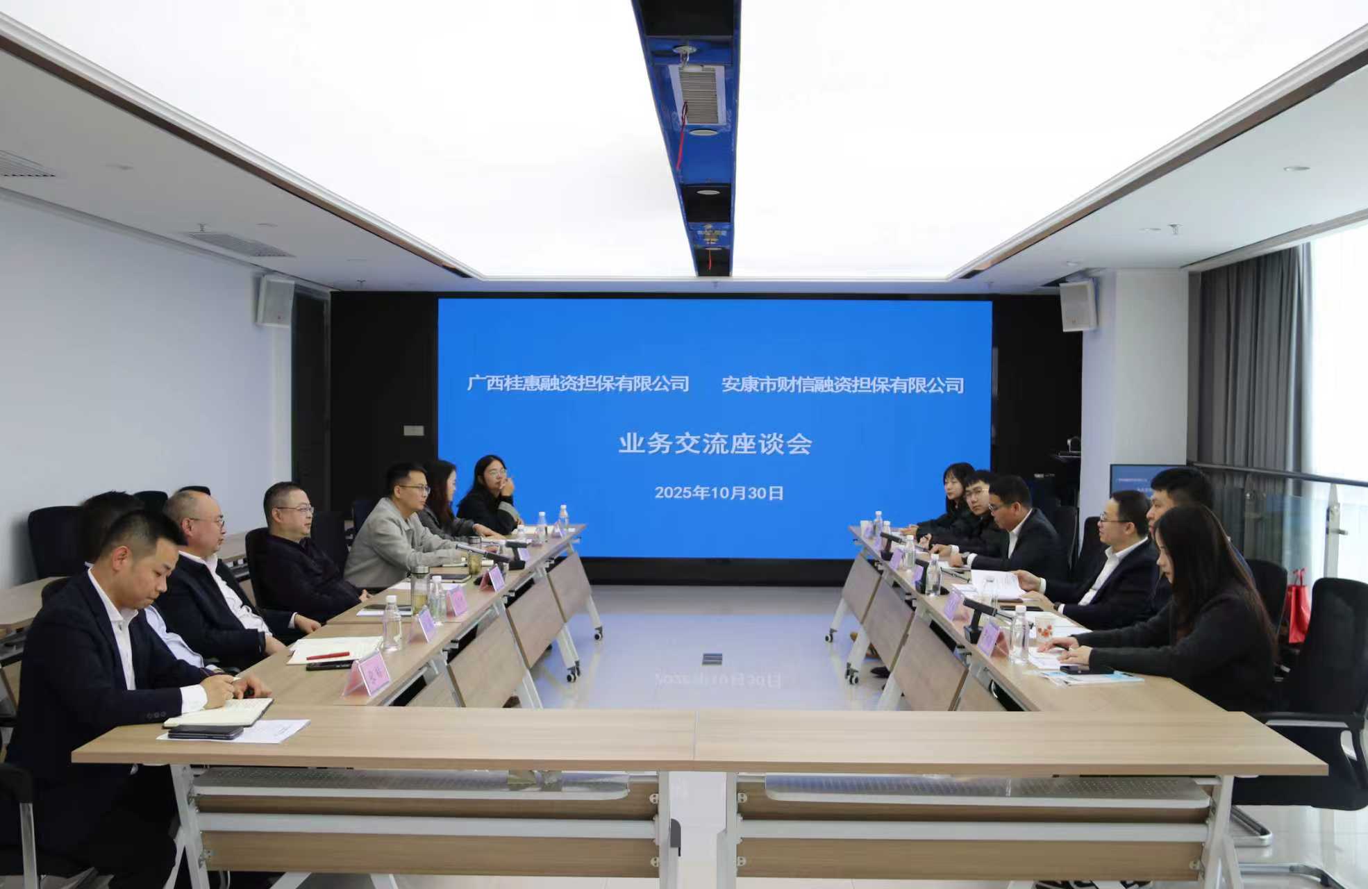 10月30日,廣西桂惠融資擔保有限公司副總經理潘誠一行6人來安康財信擔保開展交流座談。安康財信擔保董事長滕海濤,副總經理張萬坤及公司業(yè)務、風控、法務、財務、綜合部門負責人參加座談會。