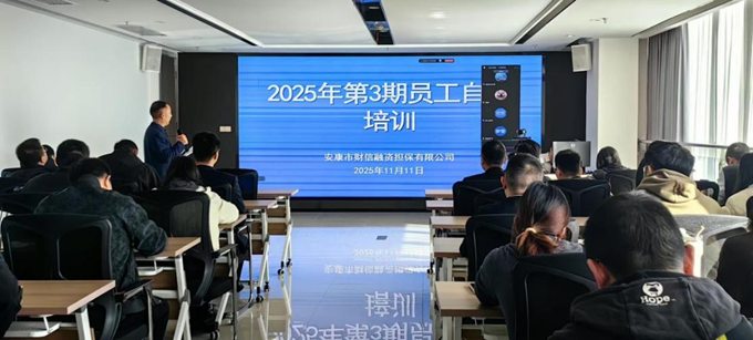 11月11日,安康財(cái)信擔(dān)保采取線上線下相結(jié)合方式,舉辦2025年第3期員工自主培訓(xùn)會。公司在家領(lǐng)導(dǎo)班子、本部全體干部職工現(xiàn)場參訓(xùn),各分公司負(fù)責(zé)人及業(yè)務(wù)骨干通過線上平臺同步參訓(xùn)。